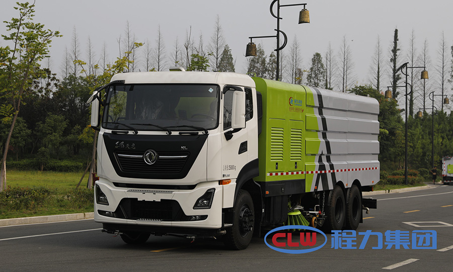 該車是采用東風(fēng)天龍底盤改裝而成,集掃路車、灑水車和高壓清洗車功能于一體,具備路面清掃、路面洗刷、高壓清洗、低壓沖洗、路緣石洗刷、垃圾收集、污水回收、噴霧降塵和道路隔離墻清洗、小廣告清洗等多種作業(yè)功能。具有先進的智能化一鍵控制技術(shù),全部作業(yè)均在駕駛室內(nèi)完成,作業(yè)時,只需選定作業(yè)模式后,各作業(yè)機構(gòu)的啟動與關(guān)停由程序自動控制。有“全洗掃”、“左洗掃”、“右洗掃”、“全掃”、“左掃”和“右掃”、“全洗”、“左洗”和“右洗”9種作業(yè)模式可供選擇。